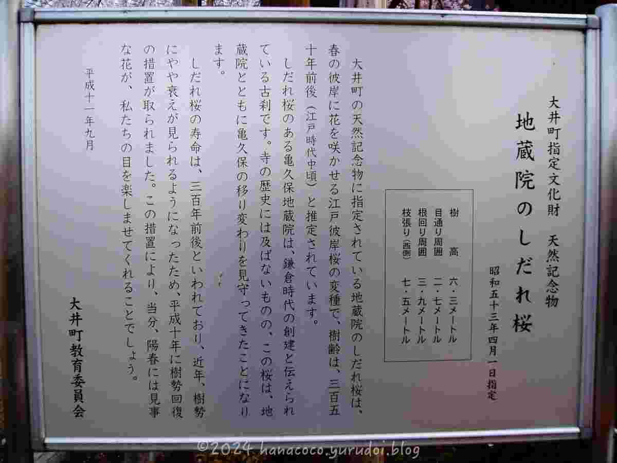 地蔵院のしだれ桜は、樹齢350年前後と推定されており天然記念物に指定されています。